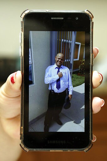 In this Wednesday, Feb. 26, 2020 photo, Yarelis Gutierrez Barrios holds up a cell phone photo at her home in Tampa, Fla., of her partner Roylan Hernandez Diaz, a Cuban asylum seeker who hanged himself in a Louisiana prison. An Associated Press investigation into Hernandez’s death last October found neglect and apparent violations of government policies by jailers under U.S. Immigration and Customs Enforcement. (AP Photo/Chris O'Meara)