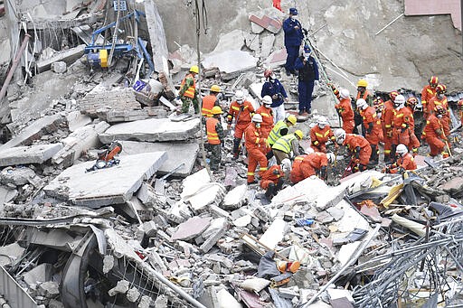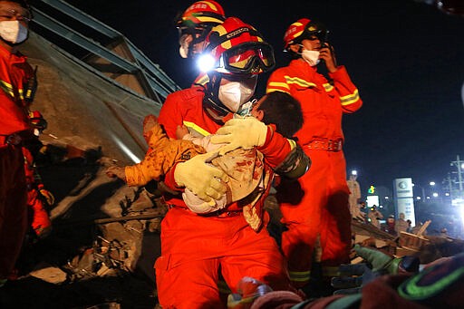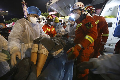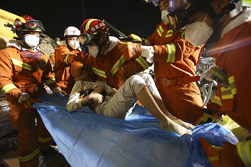 BEIJING (AP) — A man was pulled out alive after being trapped for 69 hours under the rubble of a collapsed virus quarantine hotel in southeastern China in which at least 20 other people died.