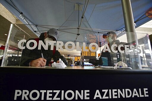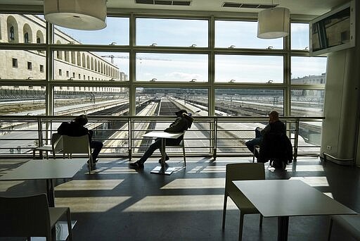 Police at Rome’s main train station checked commuters’ paperwork to ensure they had legitimate reasons to leave their residential neighborhoods for work, health or other “necessary” reasons. Carabinieri teams patrolled cafes to make sure owners were keeping customers 1-meter (yard) apart.