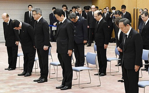 In Tokyo, Abe and his ministers gathered at the Prime Minister's Office and offered a silent prayer at 2:46 p.m., the moment the offshore earthquake struck nine years ago. At the outset of his speech, Abe apologized over the cancellation of the government ceremony. Japan has confirmed more than 1,250 cases of the coronavirus, including 696 from a cruise ship and 19 deaths.