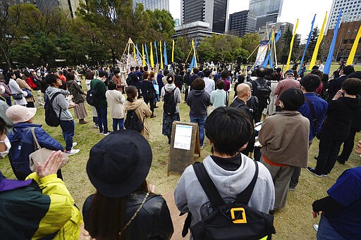 Hundreds of people gathered at Tokyo's Hibiya Park to mark the anniversary with musical performances. In Tokyo's posh shopping district of Ginza, pedestrians and visitors, many of them wearing face masks, stopped at an intersection of a clock tower and bowed in silence.