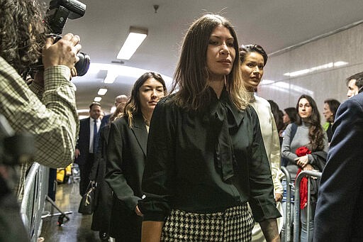 Miriam Haley arrives at court for Harvey Weinstein's sentencing, in New York, Wednesday, March 11, 2020. Weinstein faces a minimum of 5 years and a maximum of 29 years in prison for raping an aspiring actress in 2013 and forcibly performing oral sex on a TV and film production assistant in 2006. A second criminal case is pending in California. (AP Photo/Richard Drew)
