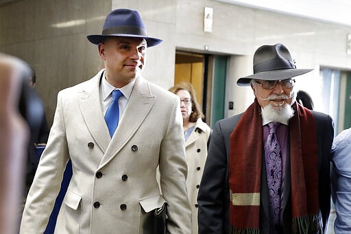 Defense attorney Arthur Aidala, left, and his father Louis Aidala, arrive at court for the sentencing of Harvey Weinstein, in New York, Wednesday, March 11, 2020. Weinstein faces a minimum of 5 years and a maximum of 29 years in prison for raping an aspiring actress in 2013 and forcibly performing oral sex on a TV and film production assistant in 2006. A second criminal case is pending in California. (AP Photo/Richard Drew)