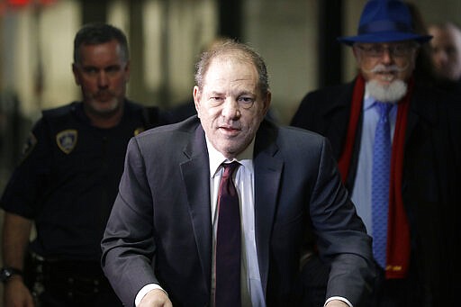 FILE - In this Feb. 20, 2020 file photo, Harvey Weinstein arrives at a Manhattan courthouse for his rape trial in New York. Weinstein was sentenced Wednesday, March 11, to 23 years in prison for rape and sexual assault. (AP Photo/Seth Wenig, File)
