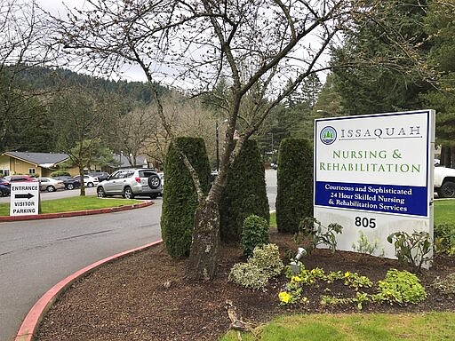 The visitor entrance is seen to the Issaquah Nursing and Rehabilitation Center in Issaquah, east of Seattle, the site of the latest death from the new coronavirus in Washington state on Tuesday, March 10, 2020. The Issaquah Nursing and Rehabilitation Center on Tuesday, announced that five residents and two staff have tested positive for the new coronavirus. They said a resident also died over the weekend. (AP Photo/Martha Bellisle)