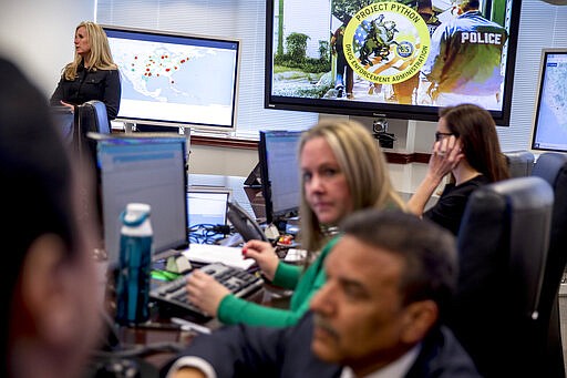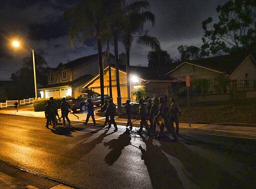 CHANTILLY, Va. (AP) — In the darkness, the team suits up quietly, putting on their helmets and tactical gear. Federal agents lug battering rams, bolt cutters and heavy weaponry by foot up a hill on a residential California street that's softly aglow from street lamps. Then the agents turn onto the walkway of their target's home.