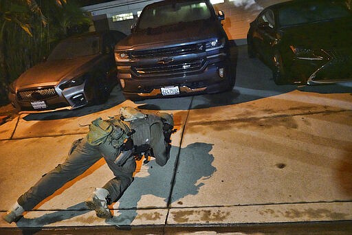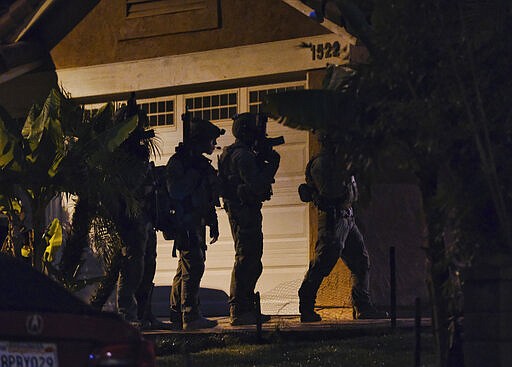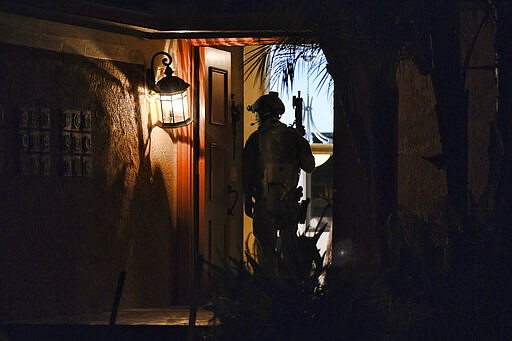 The Associated Press had exclusive access to the raid outside Los Angeles and the national command center. In California, about a dozen team members prepped early Wednesday for their target. They searched the home, a stately, salmon-colored Spanish Colonial-style with a large chandelier in the foyer, palm trees in the front yard, and crawled on the ground to look under cars, including a black Lexus, in the driveway. No shots were fired.