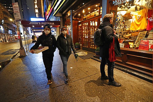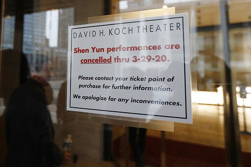 NEW YORK (AP) — The coronavirus sapped New York City of its famous hustle and bustle Friday, with no Broadway, no basketball games, no big gatherings, a populace unnerved by an ever-worsening crisis and mounting pressure to close down public schools.