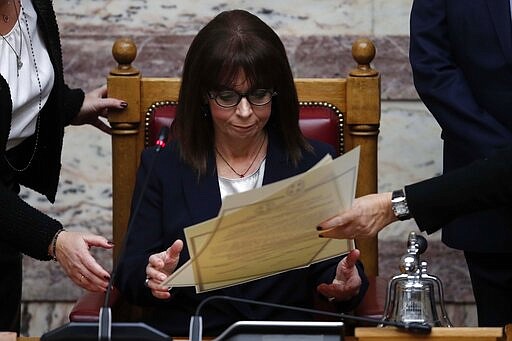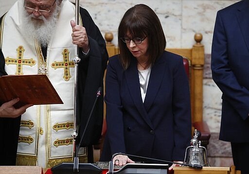 ATHENS, Greece (AP) — Greece’s first female president, a former high court judge, was formally sworn in to office Friday, nearly two months after the country’s parliament voted overwhelmingly to elect her.