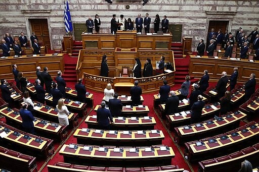 After the swearing-in, Sakellaropoulou lay a wreath at the Tomb of the Unknown Soldier in the square outside parliament, before a presidential honor guard. Despite the warnings about the virus, a small crowd gathered to watch, standing behind a security cordon across the street.