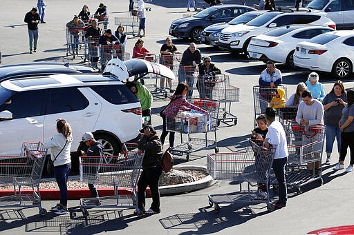 That was far from true, though some items -- frozen foods, canned tuna, herbal teas, bagged salad -- were sold out or nearly so. Signs limited customers to two large packs of toilet paper apiece, and few were available. A similar scenario played out at supermarkets all around the country amid a run on household staples that reached a peak Friday.