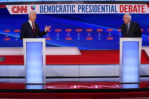 WASHINGTON (AP) — Former Vice President Joe Biden and Sen. Bernie Sanders sparred one-on-one Sunday in a Democratic debate held without a live audience in the shadow of the coronavirus pandemic. The growing crisis prompted some questionable statements from the presidential rivals, as did issues they argued about for months on once-crowded stages.