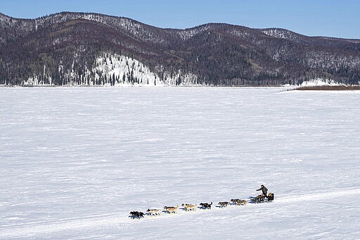 The checkpoint in Kaltag is normally at a community hall, but this year it was set up outside the village of about 235 people, 629 miles (1,012 kilometers) miles into the nearly 1,000-mile (1,609-kilometer) race across Alaska.