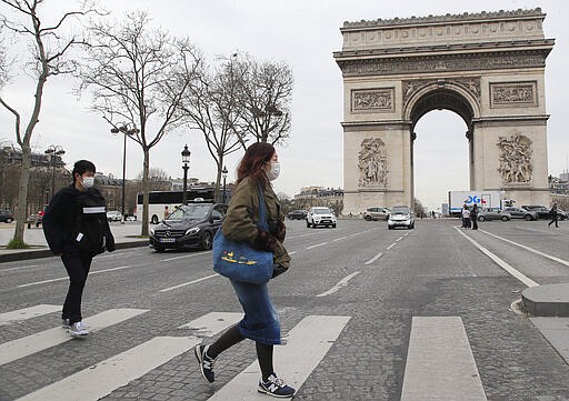 PARIS (AP) — France said Monday that it would follow other European countries in confining residents mostly to their homes during the COVID-19 pandemic, while the European Union considered closing its external borders to foreign travelers to impede infections.
