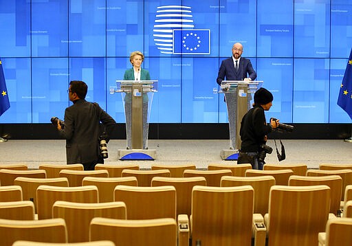 BRUSSELS (AP) — European Union leaders agreed Tuesday to immediately impose travel restrictions on most foreigners entering Europe for at least 30 days to limit the spread of the new coronavirus, and to set up fast-track transport lanes to keep vital medical equipment, food and goods flowing smoothly inside the bloc.