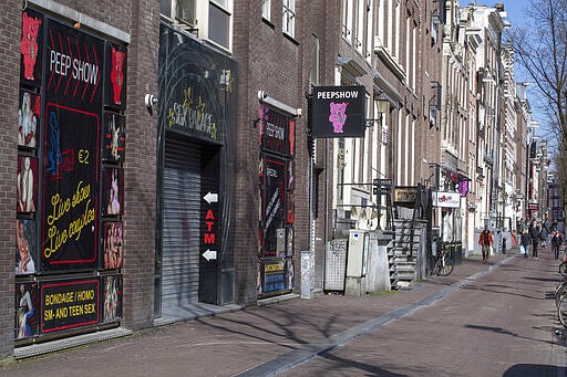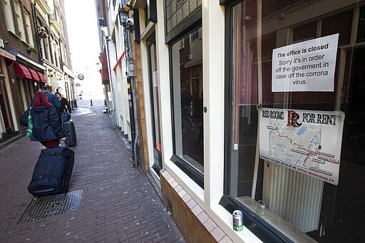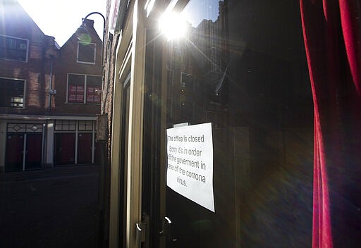 In the Netherlands, Amsterdam's famed red light district was similarly hard hit after the government on Sunday night ordered the closure of schools, bars and restaurants for three weeks and made a point of mentioning that sex clubs also were affected.
