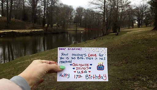 Savanah Foster, 33, from Collinsville, Illinois sent Kristine a hand-drawn card with a birthday cake and for Vetle, some stars. She first read Helgeland’s message in the Facebook group “Little love notes around the world,” and the women have kept in touch and said they have become friends.