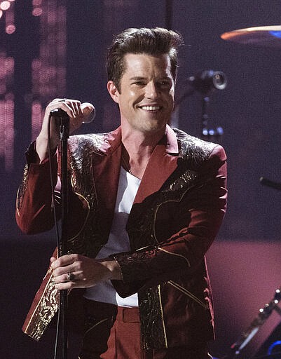 FILE - This April 14, 2018 file photo shows Brandon Flowers performing at the 2018 Rock and Roll Hall of Fame Induction Ceremony in Cleveland. The spreading coronavirus might have canceled several touring performances from A-list musical artists, but those acts have found creative ways to communicate with their fans. Flowers of The Killers tweeted a video of him washing his hands while singing the band’s signature hit, “Mr. Brightside." (Photo by Michael Zorn/Invision/AP, File)