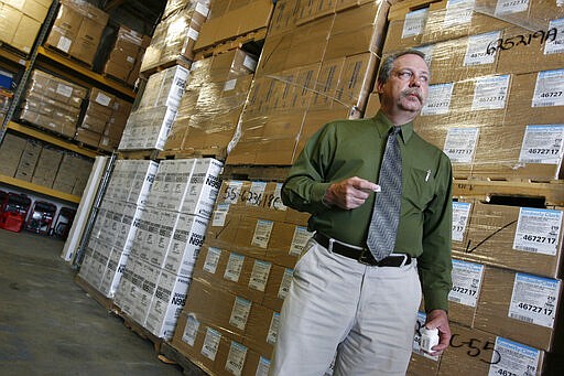 FILE - In this April 29, 2009, file photo, Don Wood, an official with the Strategic National Stockpile, awaits another truck load of medications in Salt Lake City, Utah during a swine flu outbreak from the H1N1 virus. The 2009 H1N1 pandemic prompted the largest use to date of the stockpile, which was created in 1999. It has never confronted anything on the scale of the current COVID-19 pandemic. (AP Photo/Francisco Kjolseth, Pool)