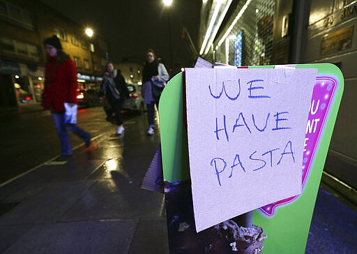 SHOPPING IN AN OUTBREAK: The trend toward online shopping has been underway for years and the arrival of the novel coronavirus may be accelerating that shift. Amazon is hiring 100,000 people to fulfill orders. Domino’s Pizza said Thursday that it is hiring about 10,000 workers in the U.S. to meet rising demand for delivery and carryout. Domino’s put out the call for delivery drivers, pizza makers, managers and truck drivers. Domino’s U.S. stores remain open for carryout and it is also offering contact-less delivery.