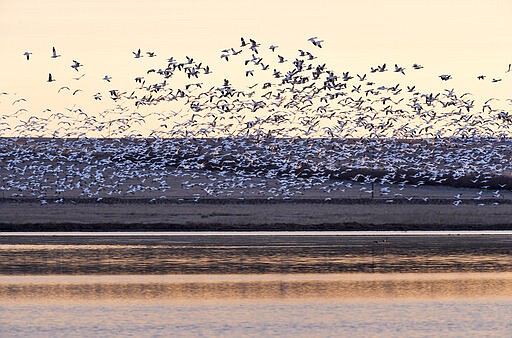 The lake is Montana’s primary snow goose staging area. As many as 300,000 snow geese and 10,000 tundra swans gather and rest there before flying onward to Alberta and central Saskatchewan in Canada.