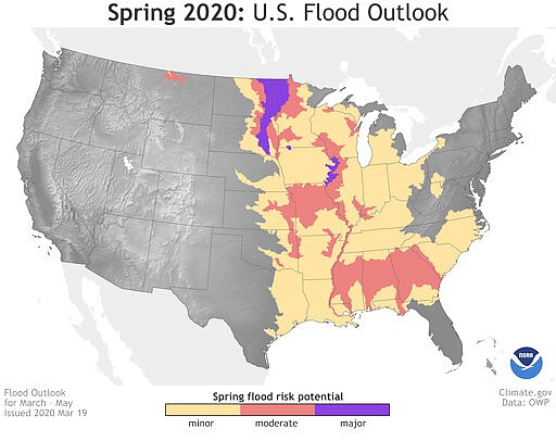 Last year saw record floods in several regions of the country. But this year this annual spring flooding season will not be as severe or prolonged as in 2019, scientists at the National Oceanic and Atmospheric Administration said Thursday.