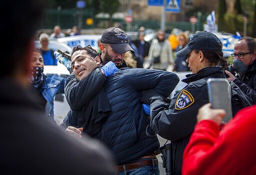 Police arrested three people for violating a ban on gatherings of more than 10 people. They also blocked a convoy of dozens of cars from entering Jerusalem to protest, and dozens of other motorists inside Jerusalem from approaching the Knesset building. Many cars honked and hung black flags out their windows.