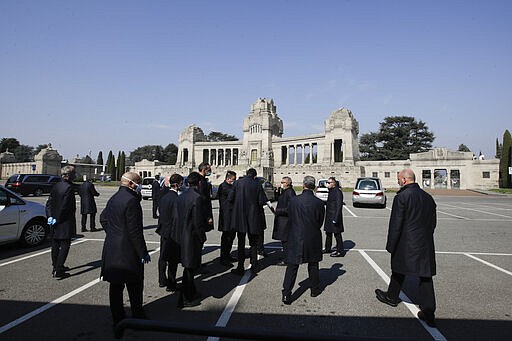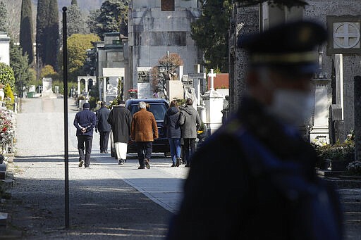 BERGAMO, Italy (AP) — The priest gave a final benediction. There were no flowers, no embraces. Francesca Steffanoni and her mother hurried away from Bergamo’s main cemetery, their furtive farewell lasting no more than 5 minutes.