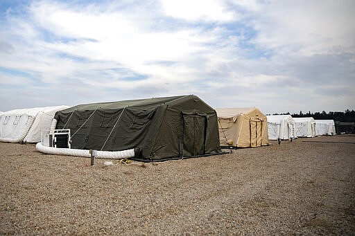 This photo provided by the U.S. Army shows large tents The 82nd Airborne Division has established to provide accommodations for up to 600 soldiers, shown March 17, 2020 at Fort Bragg, N.C. In one of Bragg's remote training areas, large tents have popped up over the last few days to house hundreds of 82nd Airborne Division troops that are returning to the base from Afghanistan and other Middle East deployments. (U.S. Army photo by Sgt. 1st Class Zach VanDyke via AP)