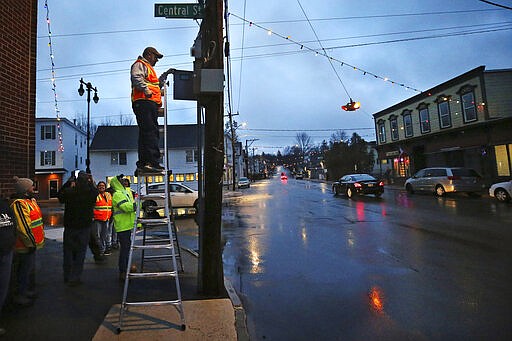 “It’s a small town; we don’t have a lot of traditions. That was one of them, and we just didn’t want it to go away,” said Lee Warburton, president of the Farmington Preservation and Improvement Organization, which maintains and installs the lights. At his suggestion, the 27 strands totaling 2,000-plus bulbs were tested and turned back on Thursday night.