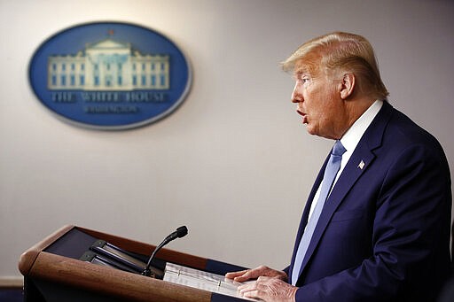 President Donald Trump speaks during a coronavirus task force briefing at the White House, Sunday, March 22, 2020, in Washington. (AP Photo/Patrick Semansky)
