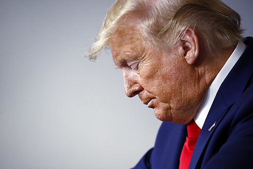 President Donald Trump listens during a coronavirus task force briefing at the White House, Sunday, March 22, 2020, in Washington. (AP Photo/Patrick Semansky)