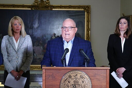 Hogan announced several initiatives in a $175 million relief package to help small businesses and their employees in Maryland. He announced a $5 million fund to provide incentives to Maryland businesses to manufacture masks, personal equipment and other supplies to help meet the immediate demands of health care workers. Some governors on Monday announced school closures through the end of the academic year, or extensions of closures through May.