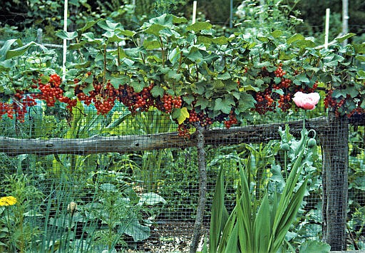 No need to abandon espalier on this side of the Atlantic: One fruit plant that works very well as an espalier everywhere is red currant. Red currant espaliers have the additional advantage of only needing pruning two times per year. In contrast, pear or apple espaliers require monthly or more frequent pruning sessions.
