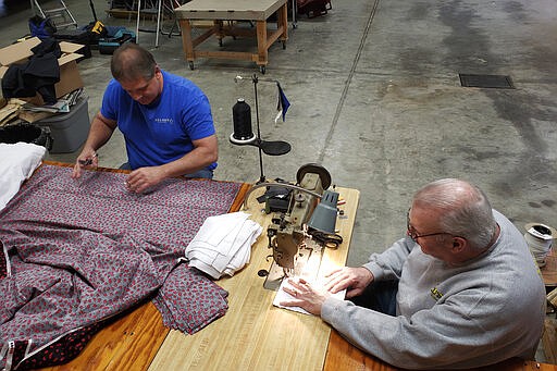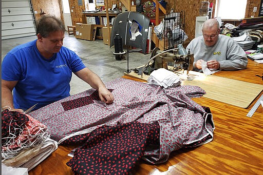 CHICAGO (AP) — Bill Purdue waterproofs basements for a living, but he has spent the past few days in his buddy's Washington, Indiana, auto trim and upholstery shop cutting rectangles of cotton fabric that his friend sews into face masks.