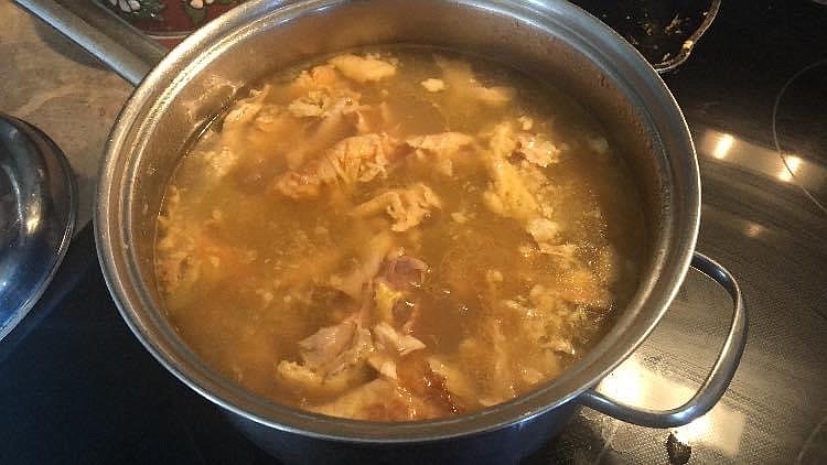 “When you cook chicken with the bones in them, don’t throw those bones away! Keep a bag for bones in the freezer,” she says. “Once you have enough, put them in a pot with enough water to just cover them. Throw in some garlic and bay leaves and simmer for hours, and I mean hours, on very low.