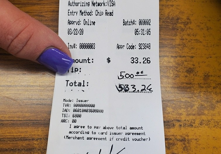 Customers Annie Parker has served every weekend for the past year surprised her with a $500 tip written on a credit card receipt left discreetly upside down on the table.