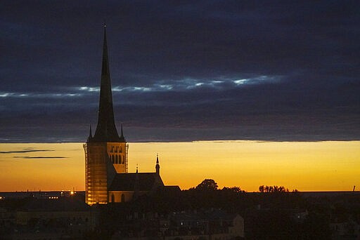 Dusk falls over Estonia's medieval capital, Tallinn, Thursday, June 27, 2019. The small Baltic nation spent more than a decade fighting fentanyl drug abuse. Although police won the war on fentanyl the market shifted further to synthetic drugs. (AP Photo/David Keyton)