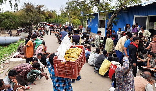 In the meantime, the police in one state were giving rations of rice to shanty-dwellers, while another state's government deposited cash into the bank accounts of newly unemployed workers. Aid groups, meanwhile, worked to greatly expand the number of meals they can hand out.