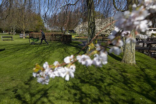 A lonely worker pushed his wheelbarrow through the garden, carrying out maintenance even though nobody will be allowed to visit the Dutch park this season because of restrictions aimed at slowing the spread of the coronavirus.