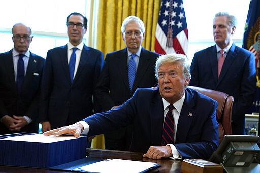 WASHINGTON (AP) — President Donald Trump signed an unprecedented $2.2 trillion economic rescue package into law after swift and near-unanimous action by Congress to support businesses, rush resources to overburdened health care providers and help struggling families during the deepening coronavirus epidemic.