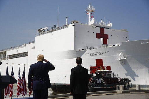 After speaking in Norfolk, Trump watched as the USS Comfort slowly made its way out of port. The 1,000-bed hospital ship had been undergoing planned maintenance, but was rushed back into service to aid the city.