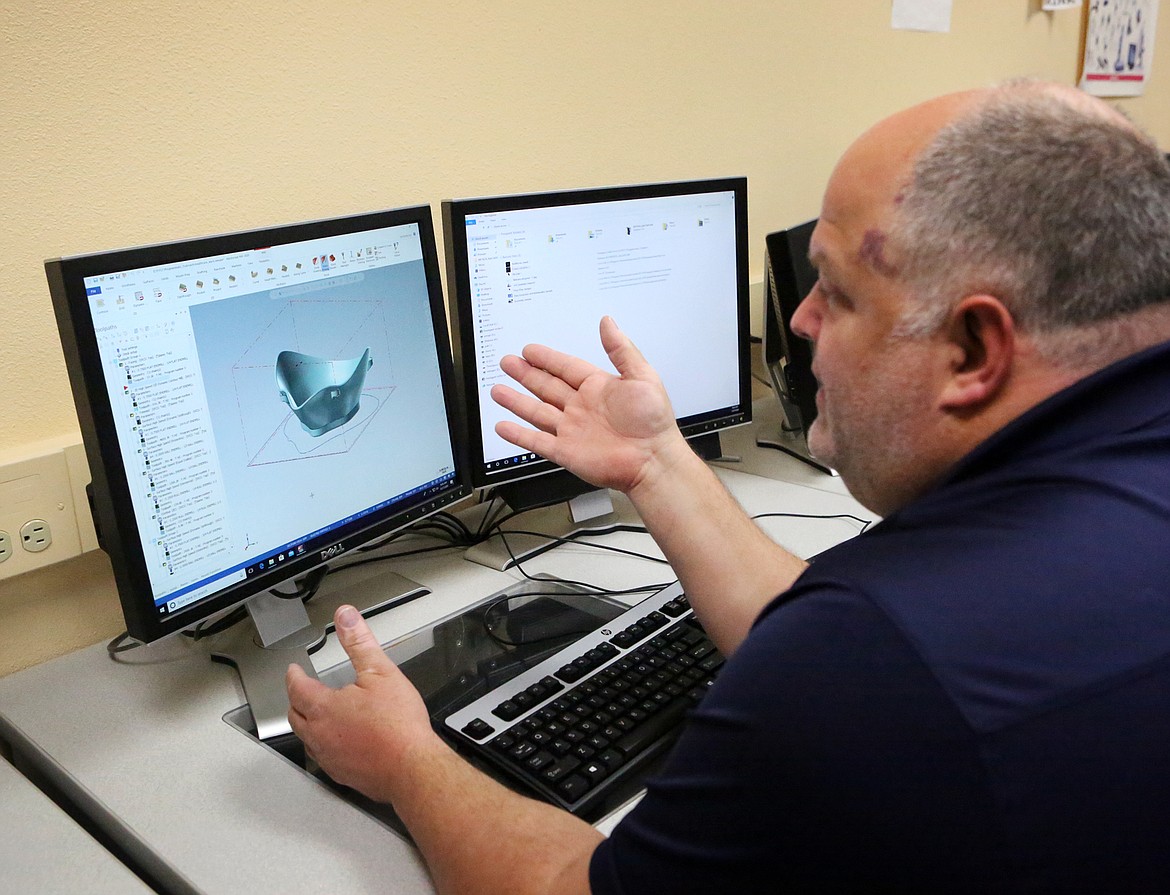 Dan Leatzow, an advanced manufacturing instructor at FVCC, is taking things to the next level by experimenting with ways to machine-produce masks, which is more efficient than using 3-D printers, although he’s got six of those running in the meantime.