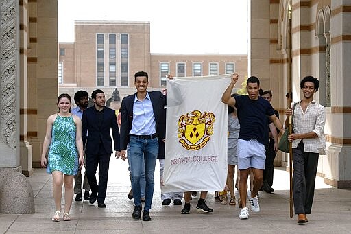 After being told they would likely finish the semester online from their homes, about one-fourth of the 1,000-member class of '20 paraded through the archway behind the heraldic flags from their residential colleges.