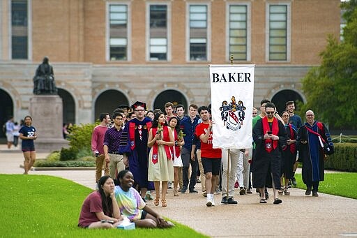 At Rice University in Houston, students traditionally walk through the main archway, known as the Sallyport, only twice — once during the freshman matriculation ceremony, and again at commencement.