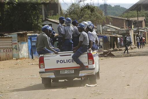 Zimbabwean police patrol the streets of Harare, Zimbabwe, Monday, March, 30, 2020. Zimbabwe went into a lockdown for 21 days in an effort to curb the spread of the coronoavirus. The new coronavirus causes mild or moderate symptoms for most people, but for some, especially older adults and people with existing health problems,it can cause more severe illness or death. (AP Photo/Tsvangirayi Mukwazhi)
