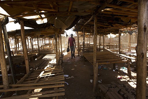 A man walks through a deserted market stalls in Harare, Zimbabwe, Monday, March, 30, 2020. Zimbabwe went into a lockdown for 21 days in an effort to curb the spread of the coronoavirus. The new coronavirus causes mild or moderate symptoms for most people, but for some, especially older adults and people with existing health problems,it can cause more severe illness or death. (AP Photo/Tsvangirayi Mukwazhi)