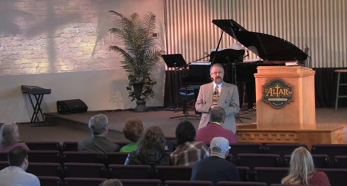 “I think when things get hard, the church really needs to be the one up and running,” he said during his hourlong sermon delivered to what appears to be about 15 to 20 people. “I really do. I’ve suggested that to everyone I know.”