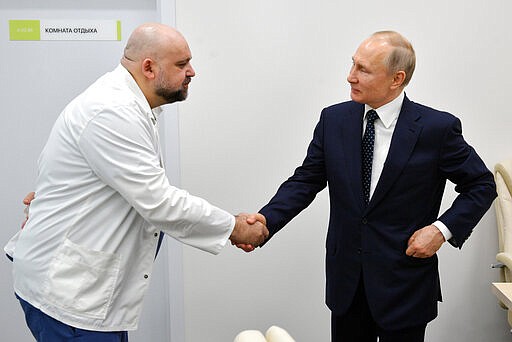 On Tuesday, Dr. Denis Protsenko, head of Moscow’s top hospital for coronavirus patients, was reported to have the virus. That came only a week after Putin visited the hospital and was photographed shaking hands with Protsenko.