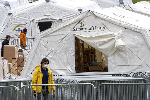 NEW YORK (AP) — With refrigerated morgue trucks parked on New York City's streets to collect the surging number of dead, public health officials projected Tuesday that the coronavirus could ultimately kill more than 100,000 people across the U.S. Some states that have become hot spots warn they're running low on ventilators, while two cruise ships pleaded for Florida to allow them to dock to carry off the sick and dead.